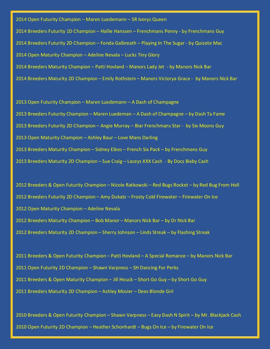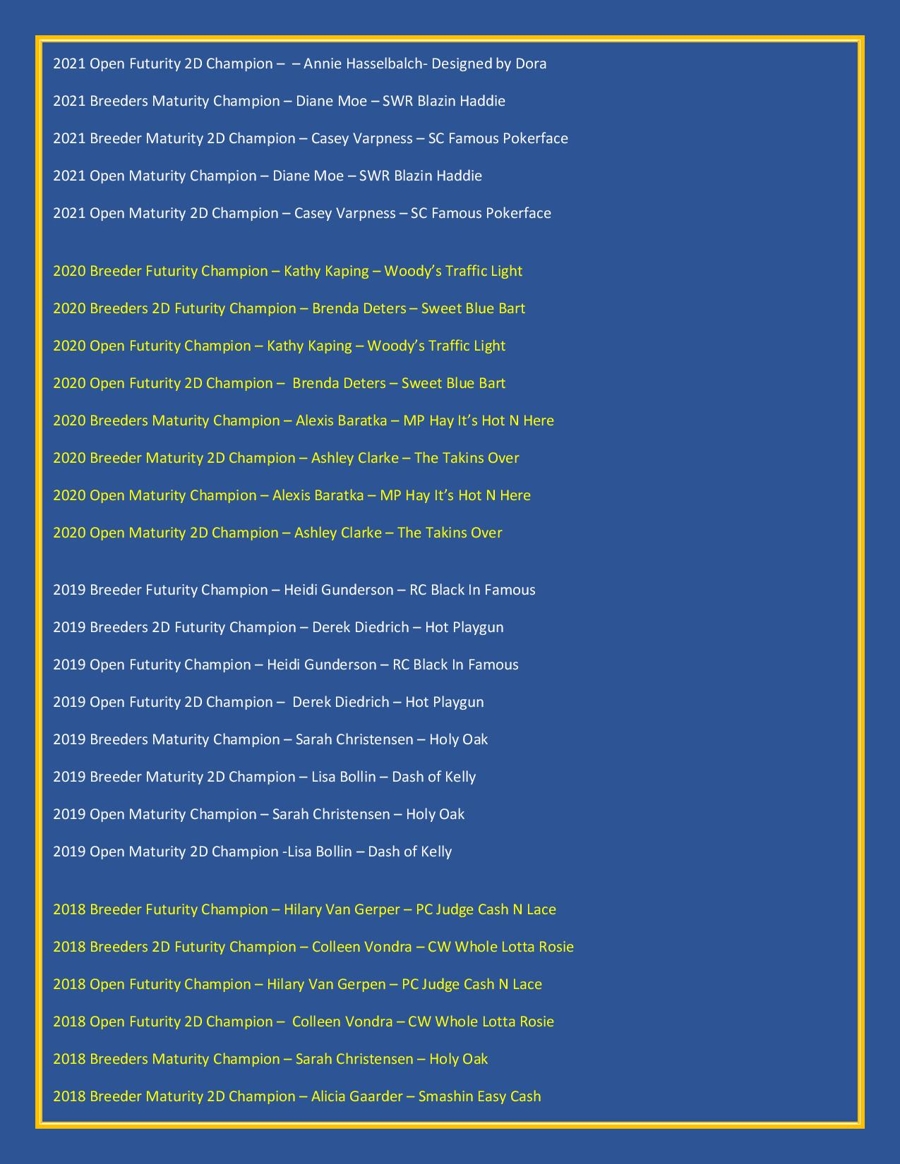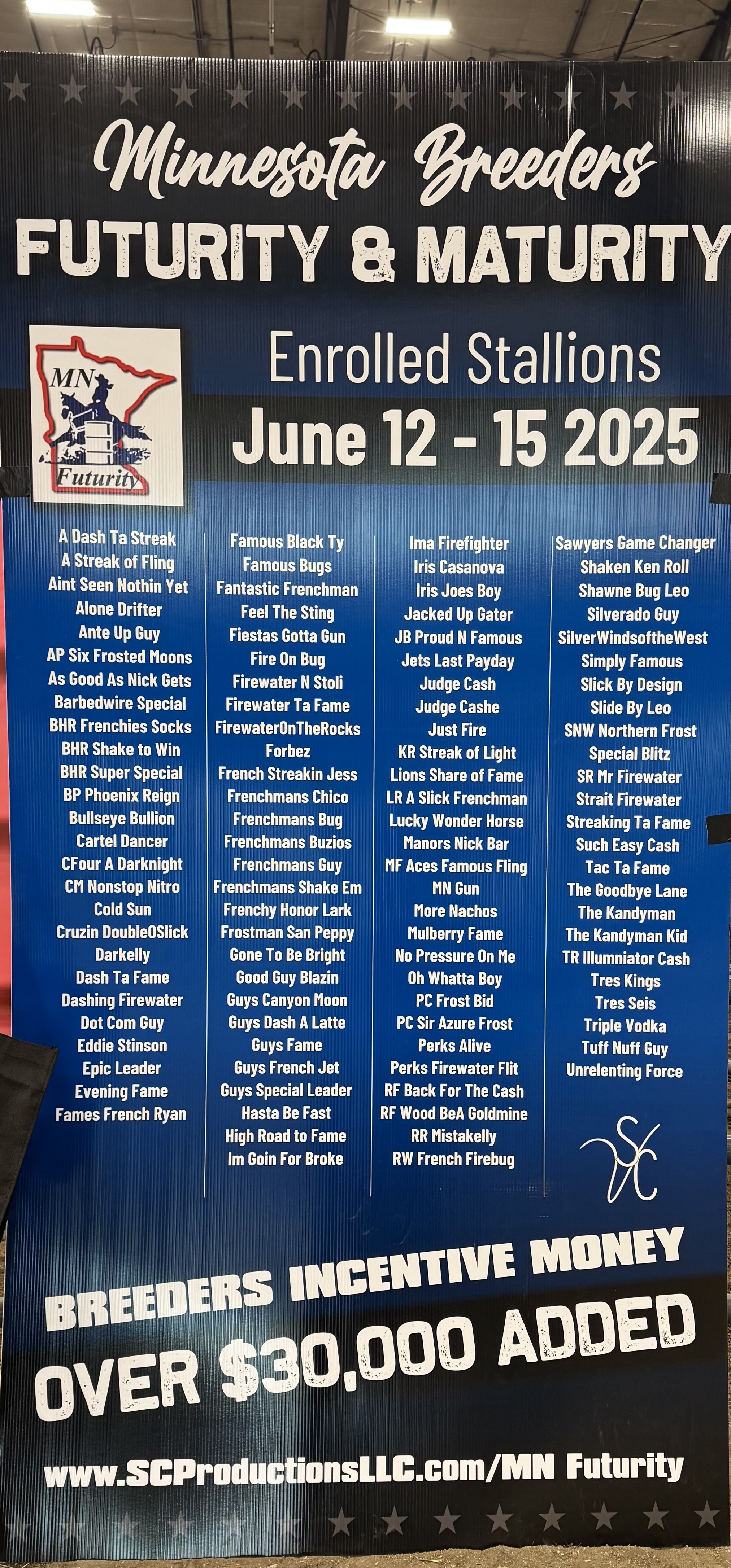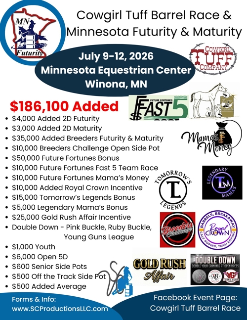 New in 2026, SC Productions added a new event for any aged horse by a 2026 Minnesota Futurity Stallion's offspring, to be held: