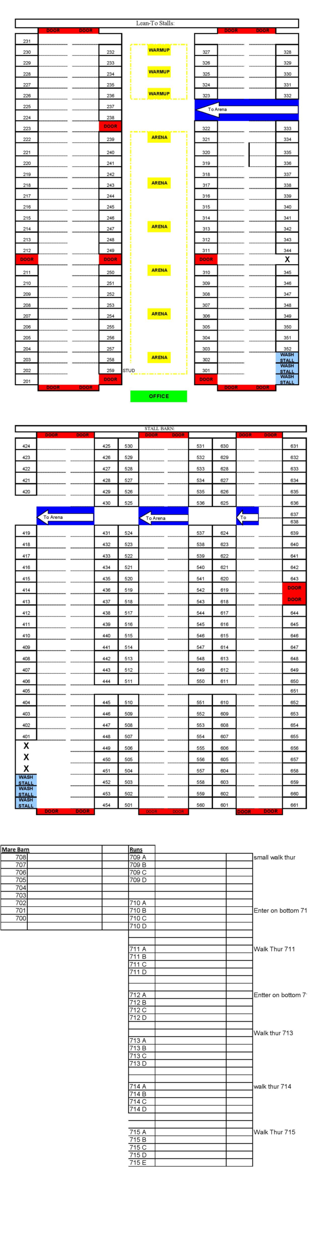Draws, Stalls, RV & Warm Ups, Exhibitions