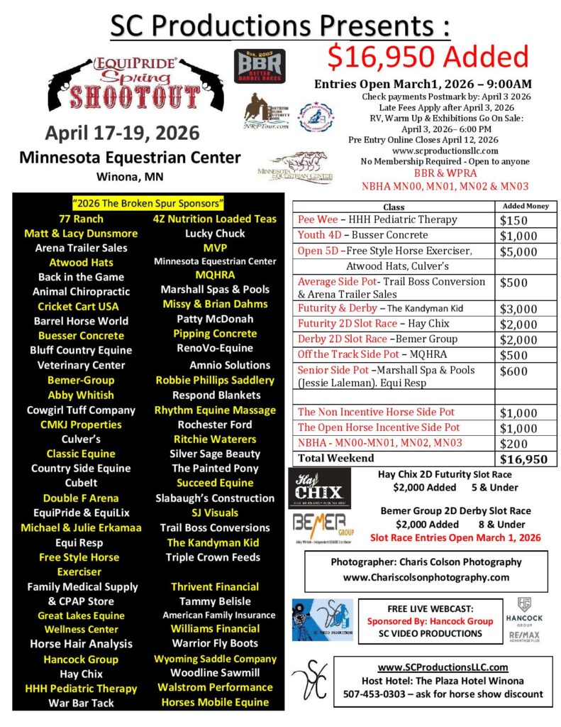 Facebook Event Page ” SC Productions EquiPride Spring Shootout” – Click Here