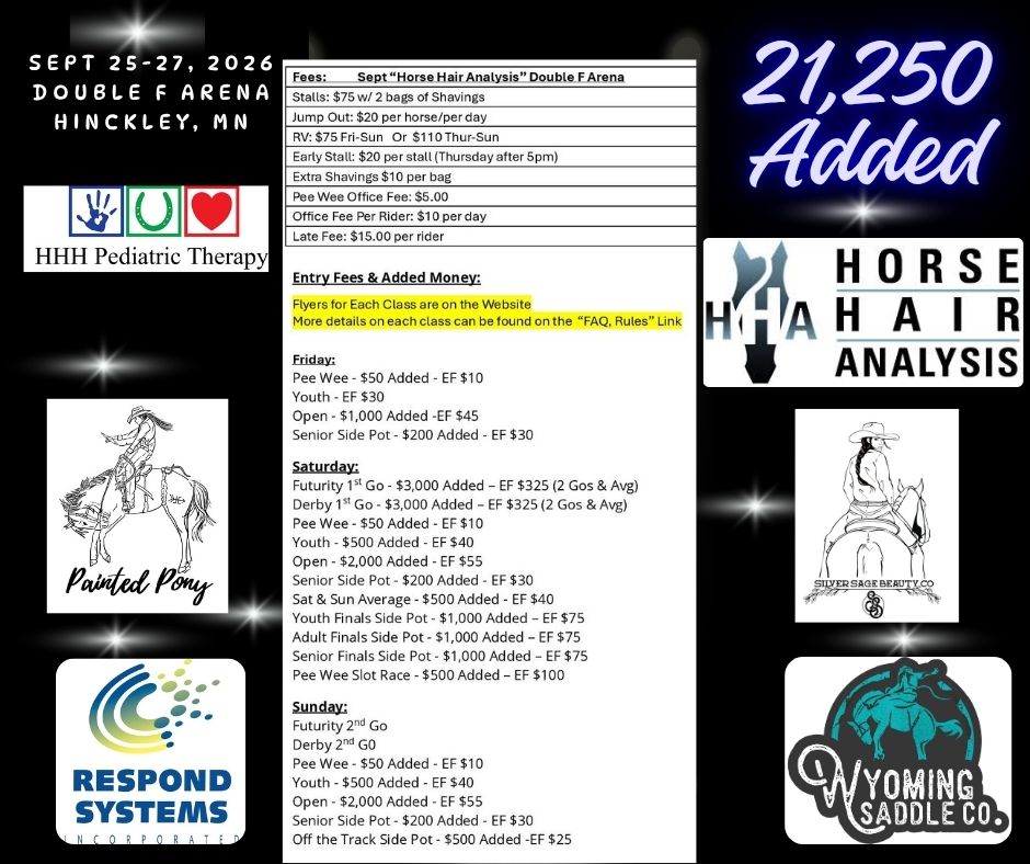 Host Hotel – Days Inn – 320-384-7751 – Ask for horseshow discount – Click Here