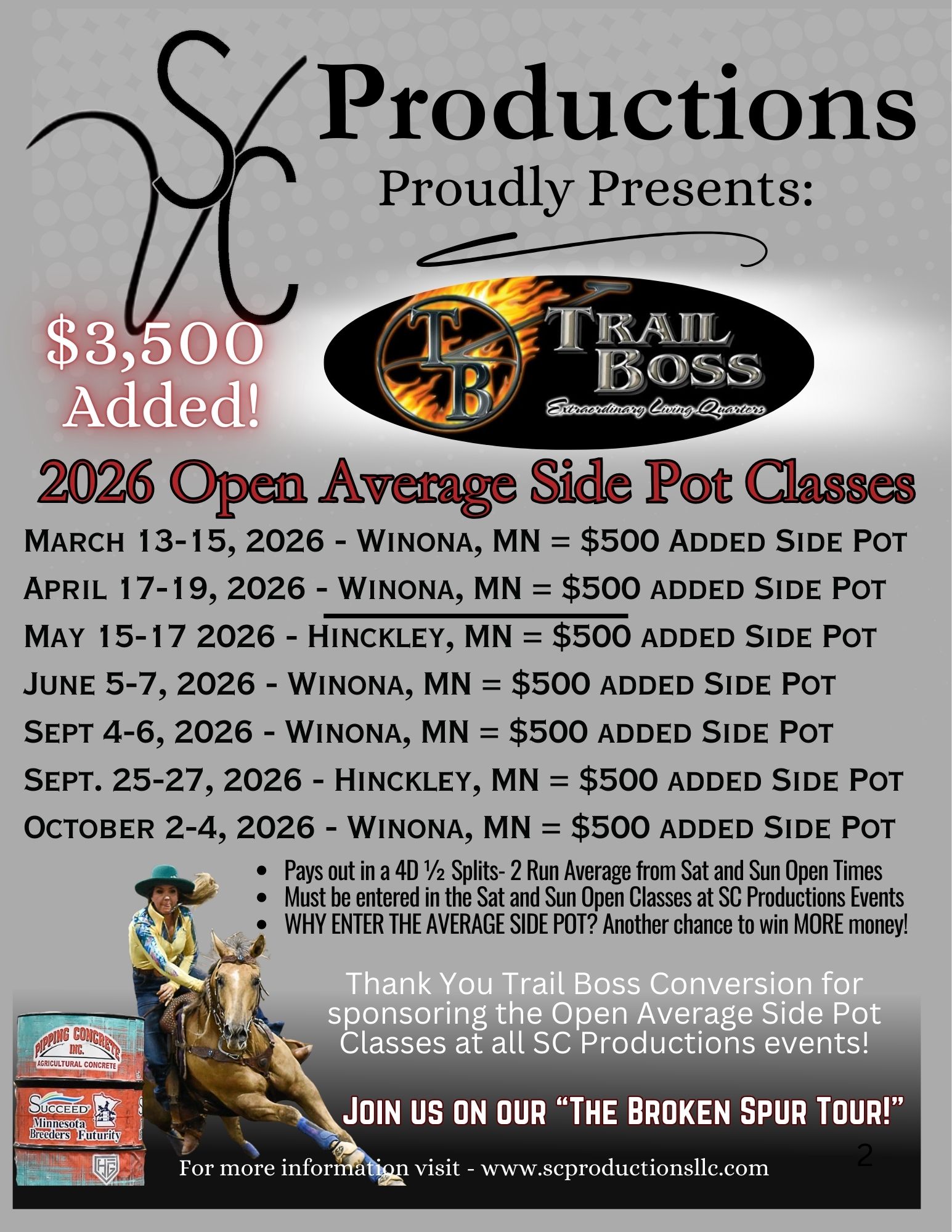 Facebook Event Page “SC Productions Arena Trailer Sales Barrel Race 2026” –Click Here