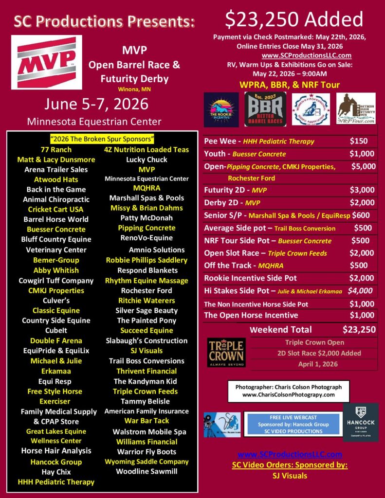 Facebook Event Page – “SC Productions MVP Barrel Race ” – Click Here