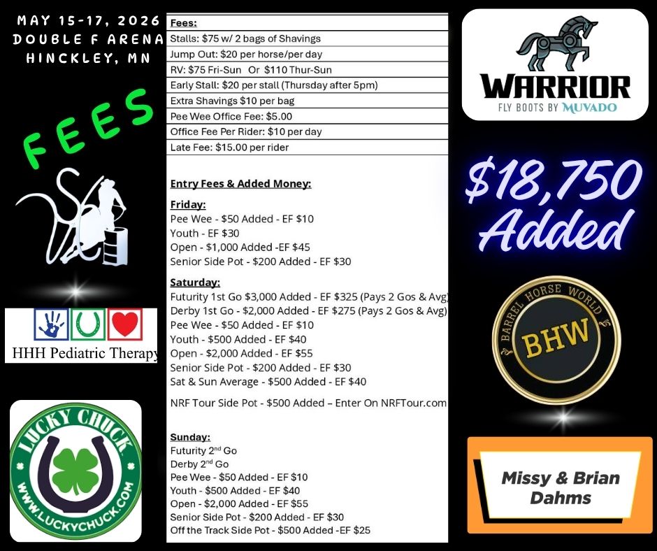 Host Hotel – Days Inn – 320-384-7751 Ask for the horse Show discount – Click Here