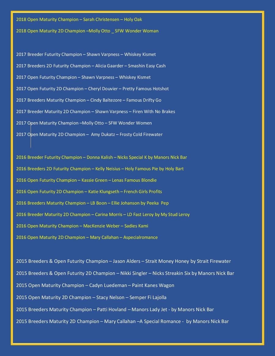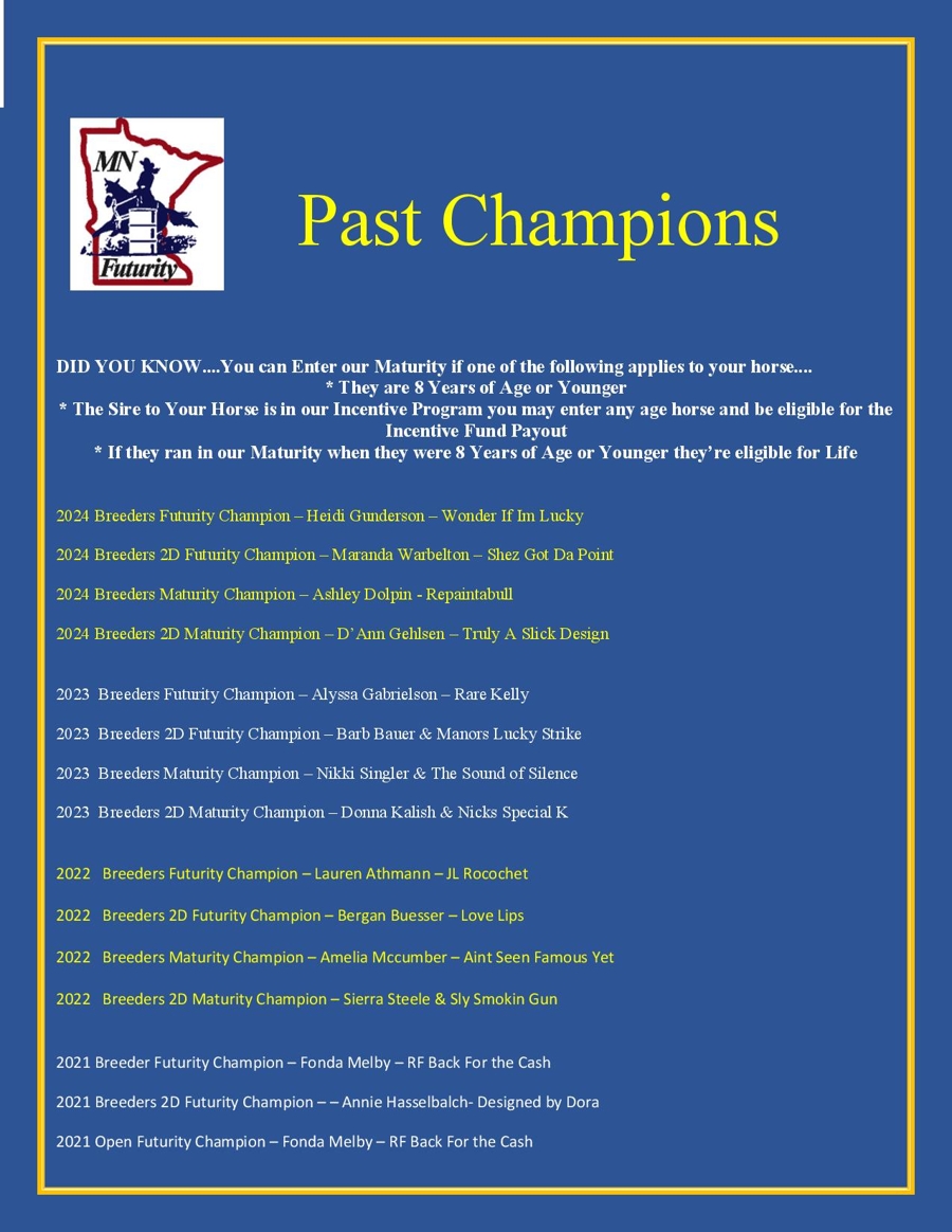 New in 2026, SC Productions added a new event for any aged horse by a 2026 Minnesota Futurity Stallion's offspring, to be held: